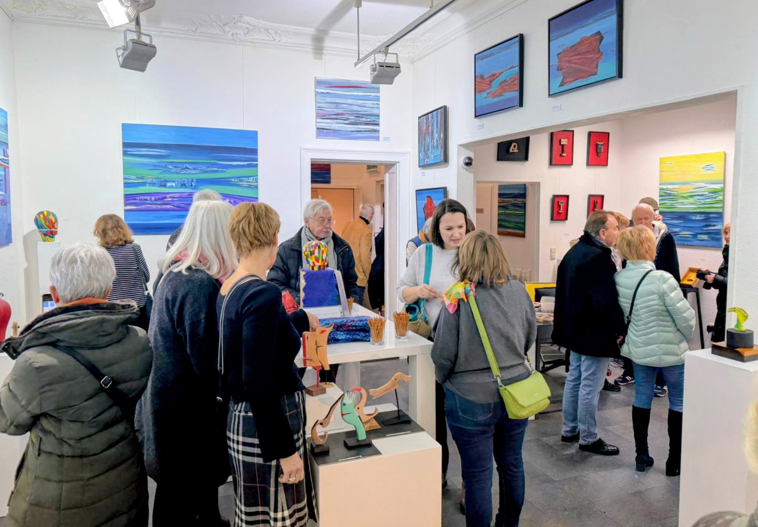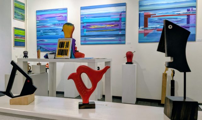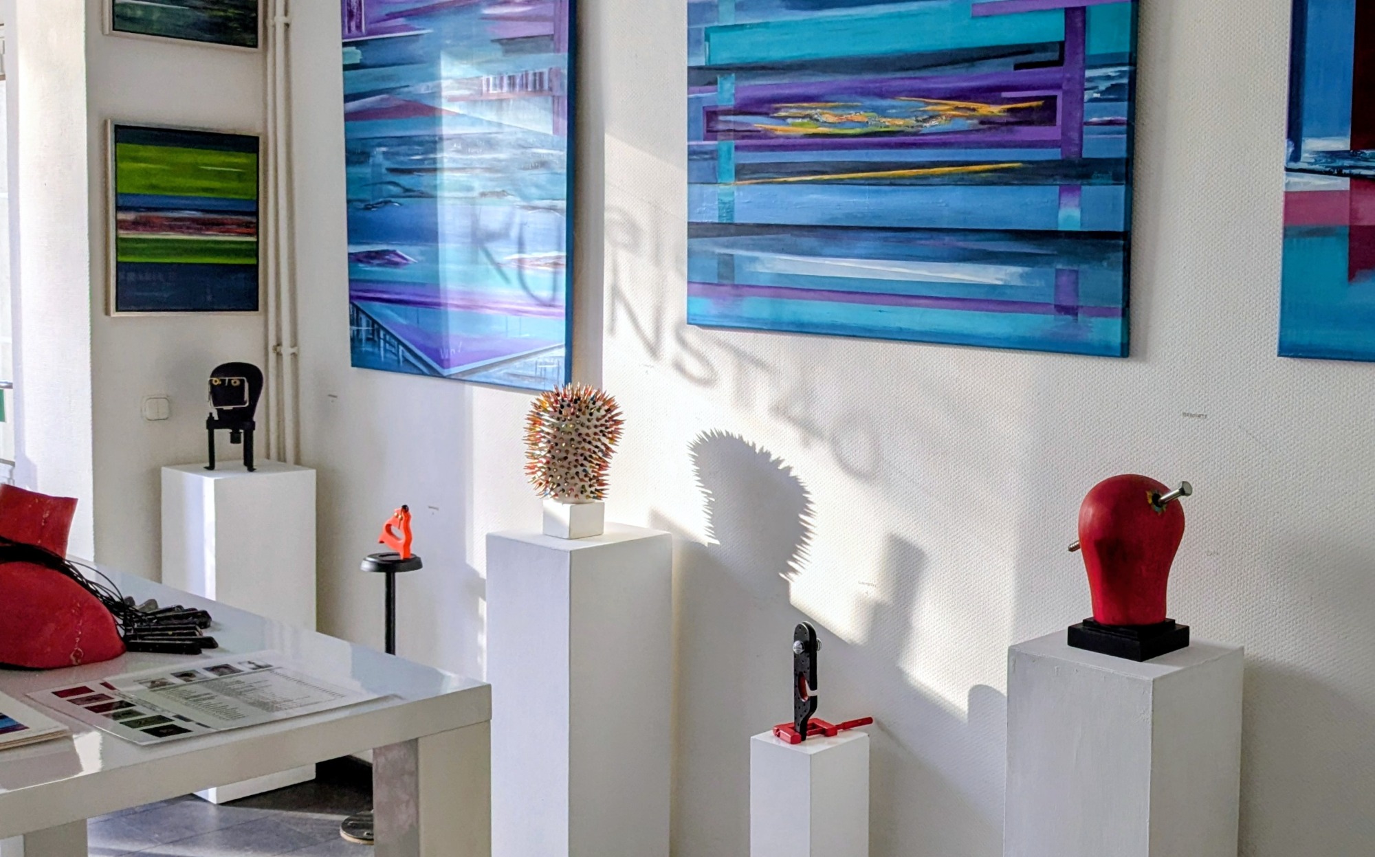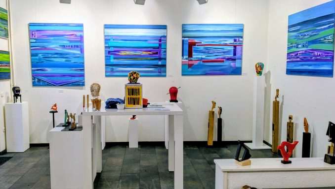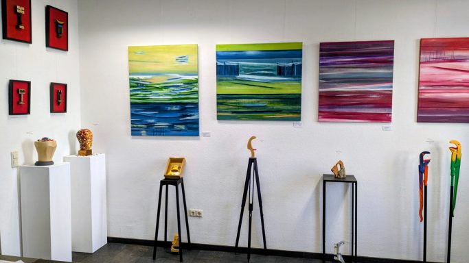 Gemeinsame Ausstellung von Heiner Rosenstiel (Malerei) und Sebastian Höher (Skulpturen und Wandskulpturen).